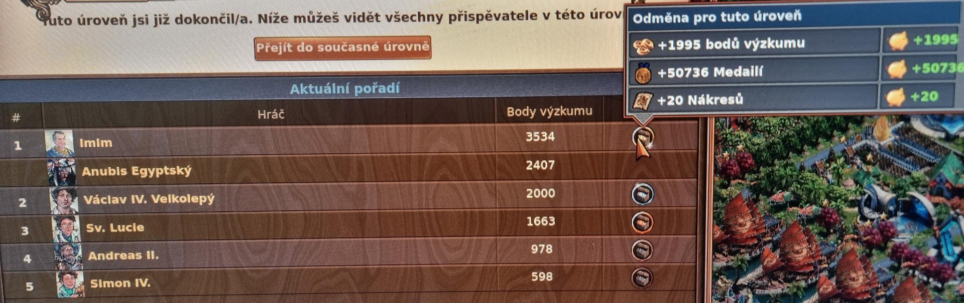 Podhazovači tedy stačí, aby vložil na moji budovu jen 1250 bodů. Tím zabere přesně polovinu zbytku, a nikdo další už jej nepřehodí. Má jisté 1. místo jen za 1250 bodů, ale s jistou odměnou 740 x bonus jeho ARCu jakmile zavřu